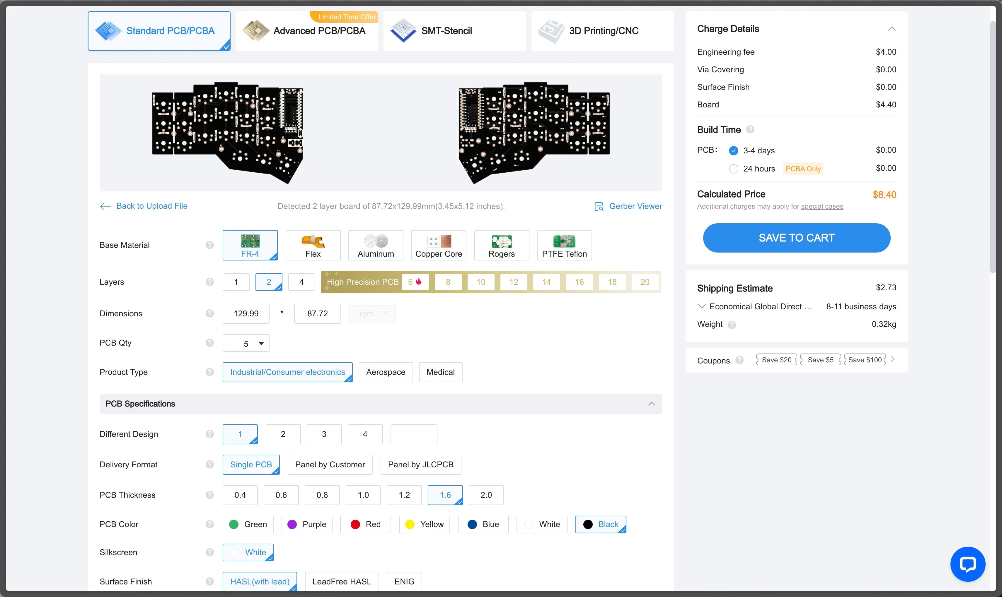Upload the file to JLCPCB.
